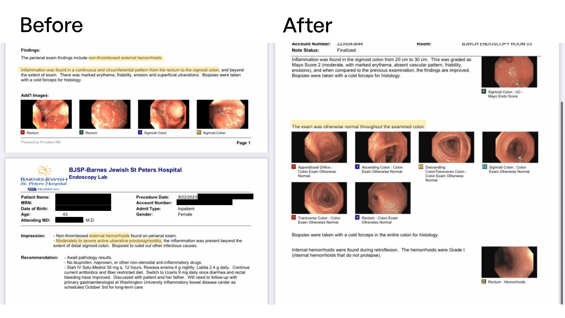 Her symptoms were cut in half within weeks. And by 4 weeks her symptoms were reduced so much she was able to come off her medication. By 16 weeks, she was ready for another colonoscopy. She went from "severe ulcerative colitis", to having a nearly perfect report, with just one tiny spec left that still needed time to heal. And her doctor, who had previously told her she needed to remove her colon, was stunned.
